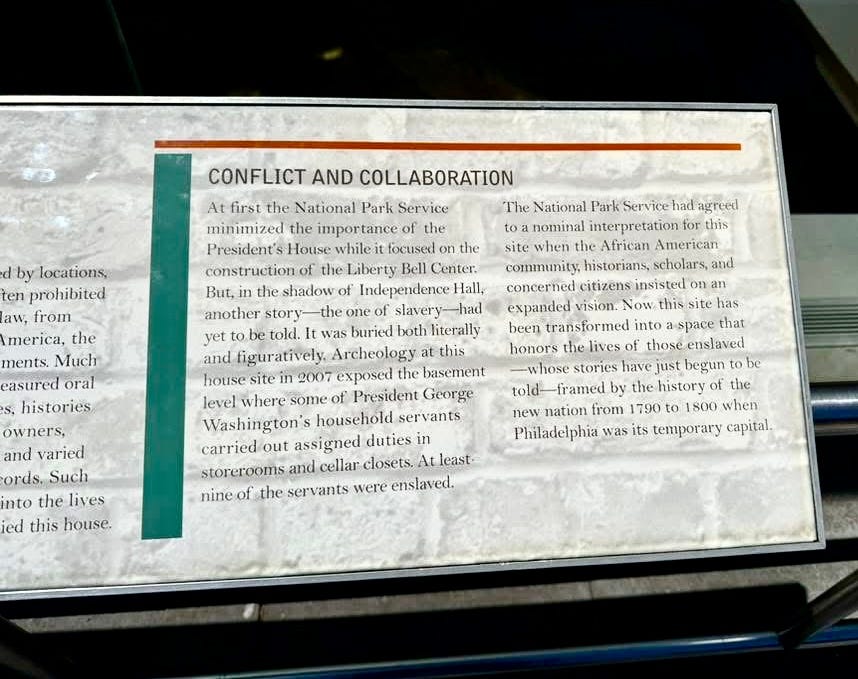 As a wordsmith, I focused on the word “disproportionately.” It feels subjective. I know white supremacists feel differently about Black History Month than do descendants of slaves. Just last week, a National Park Service slavery exhibit in Philadelphia was removed. I know this because Mike, my friend since fourth grade, shared this photo he took last year on his historical road trip, when he visited Philadelphia.